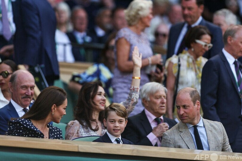 【7月11日 AFP】(写真追加)テニス、ウィンブルドン選手権(The Championships Wimbledon 2022)は10日、男子シングルス決勝が行われ、英国のウィリアム王子(Prince William)とキャサリン妃(Catherine, Duchess of Cambridge)、長男のジョージ王子(Prince George)が観戦に訪れた。(c)AFP