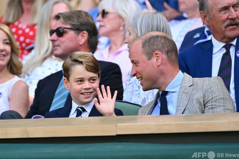 【7月11日 AFP】(写真追加)テニス、ウィンブルドン選手権(The Championships Wimbledon 2022)は10日、男子シングルス決勝が行われ、英国のウィリアム王子(Prince William)とキャサリン妃(Catherine, Duchess of Cambridge)、長男のジョージ王子(Prince George)が観戦に訪れた。(c)AFP