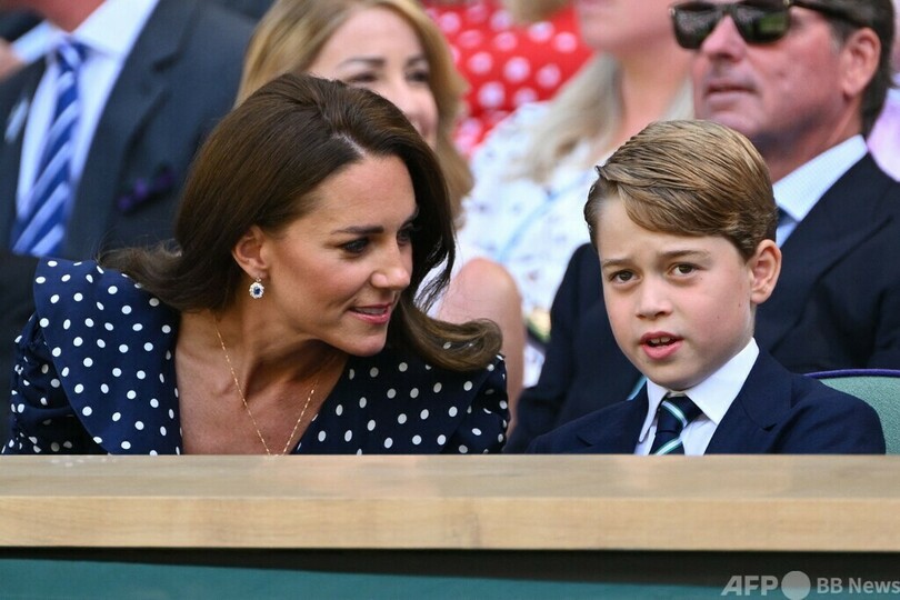 【7月11日 AFP】(写真追加)テニス、ウィンブルドン選手権(The Championships Wimbledon 2022)は10日、男子シングルス決勝が行われ、英国のウィリアム王子(Prince William)とキャサリン妃(Catherine, Duchess of Cambridge)、長男のジョージ王子(Prince George)が観戦に訪れた。(c)AFP