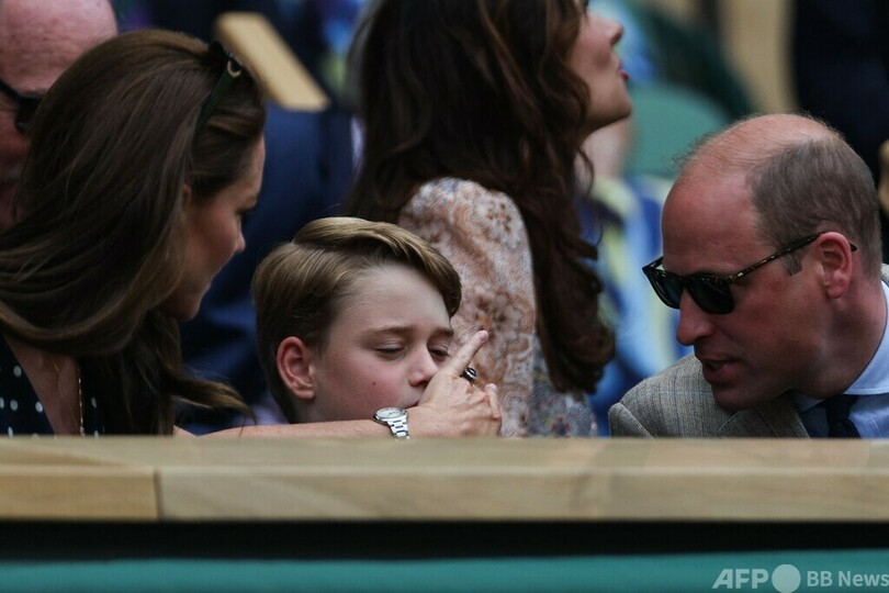 【7月11日 AFP】(写真追加)テニス、ウィンブルドン選手権(The Championships Wimbledon 2022)は10日、男子シングルス決勝が行われ、英国のウィリアム王子(Prince William)とキャサリン妃(Catherine, Duchess of Cambridge)、長男のジョージ王子(Prince George)が観戦に訪れた。(c)AFP