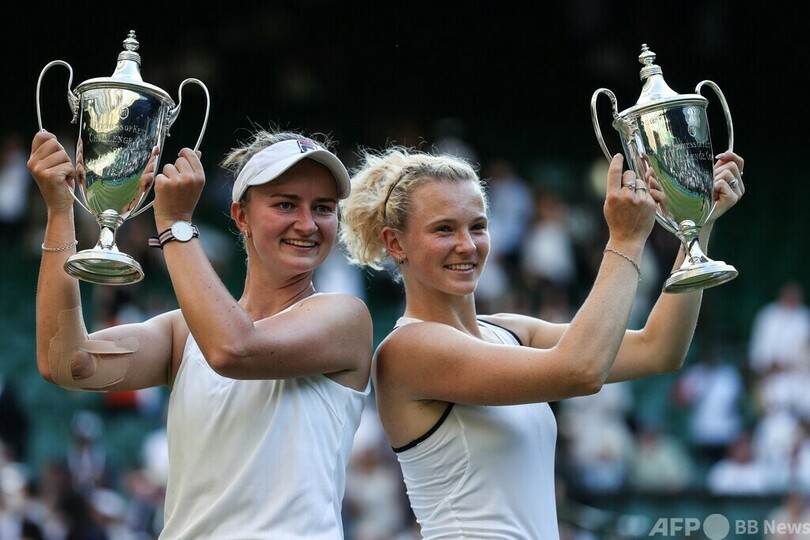 【7月11日 AFP】テニス、ウィンブルドン選手権(The Championships Wimbledon 2022)は10日、女子ダブルス決勝が行われ、大会第2シードのチェコのバルボラ・クレイチコバ(Barbora Krejcikova)/カテリーナ・シニアコバ(Katerina Siniakova)組が6-2、6-4で第1シードのエリーゼ・メルテンス(Elise Mertens、ベルギー)/張帥(Zhang Shuai、中国)組を下し、2018年以来となる2度目の優勝を果たした。