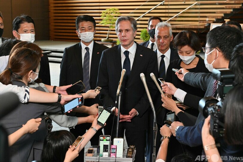 【7月11日 AFP】米国のアントニー・ブリンケン(Antony Blinken)国務長官は11日、岸田文雄(Fumio Kishida)首相と会談し、銃撃され死去した安倍晋三(Shinzo Abe)元首相への弔意を伝えた。