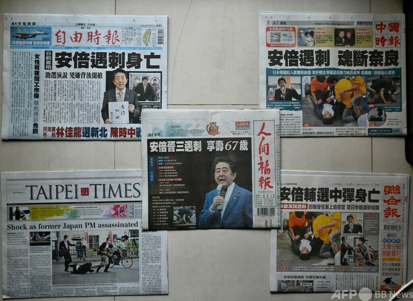 【7月11日 AFP】安倍晋三(Shinzo Abe)元首相の死去を受け、台湾では11日、総統府などに半旗が掲げられた。