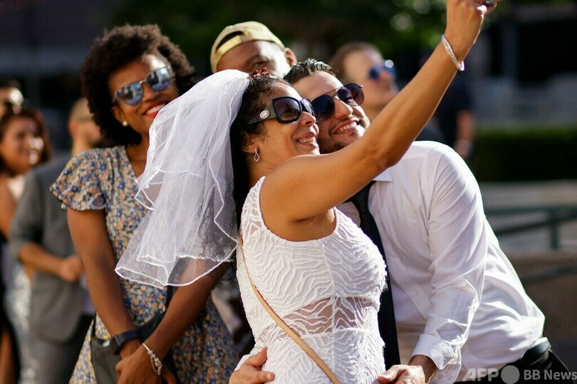 【7月16日 AFP】米ニューヨークで今月、カップル約500組の集団結婚式が行われた。新型コロナウイルス禍で生じた「傷」を癒やすための試みで、参加した新郎新婦たちはお互いを祝福し合った。