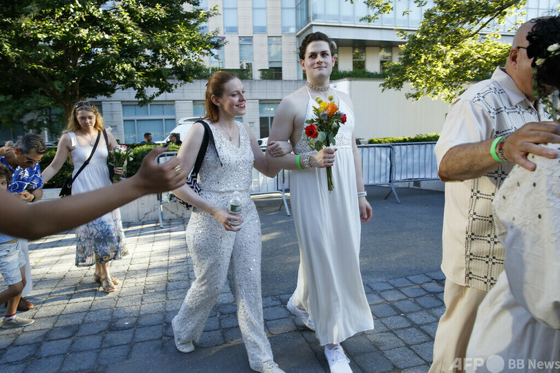 【7月16日 AFP】米ニューヨークで今月、カップル約500組の集団結婚式が行われた。新型コロナウイルス禍で生じた「傷」を癒やすための試みで、参加した新郎新婦たちはお互いを祝福し合った。