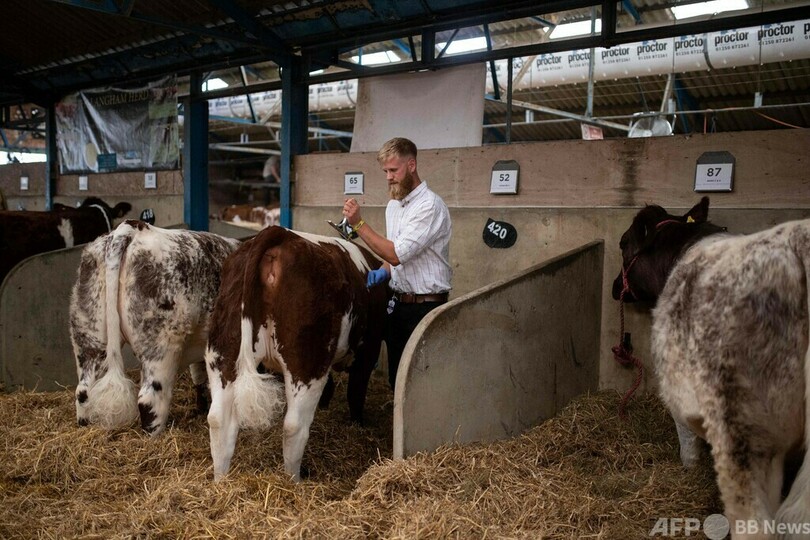 【7月27日 AFP】英イングランド北部ハロゲート(Harrogate)で開かれた「グレート・ヨークシャー・ショー(Great Yorkshire Show)」に参加し、牛舎で休む出展者ら。1838年に初めて開催されたこの農業品評会では農村生活のあらゆる側面を見ることができ、例年7月の4日間で約14万人の来場者を集めている。(c)AFP