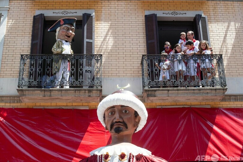 【7月16日 AFP】スペイン北部ナバーラ(Navarra)州パンプロナ(Pamplona)の「サン・フェルミン祭(San Fermin Festival)」で今週、巨大人形のパレードが行われた。大頭の仮面をかぶった人々が大人や子どもを追い掛け回す姿も見られた。今年のサン・フェルミン祭は、14日に終了した。(c)AFP