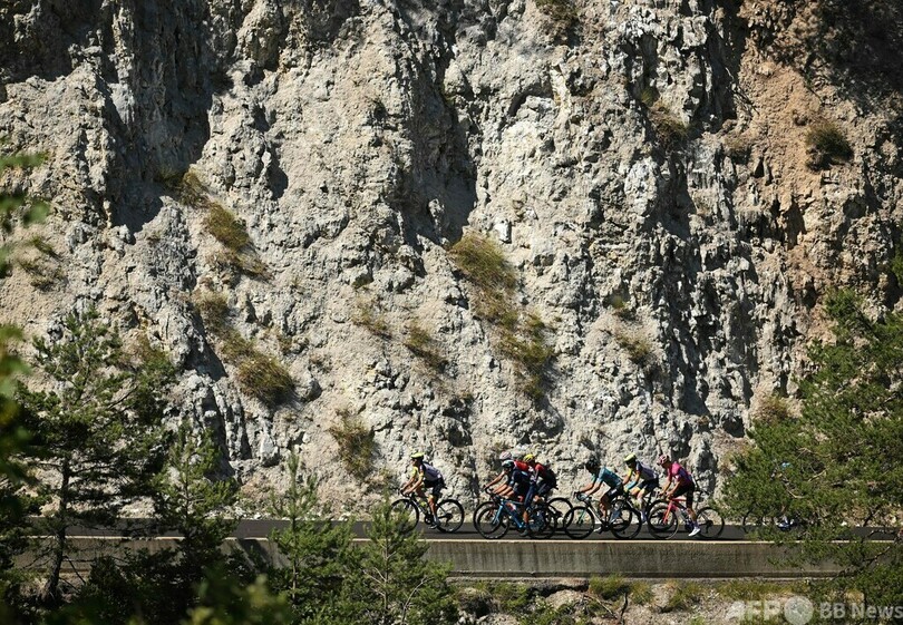 総合争いでは、チーム・ユンボ・ビスマ(Team Jumbo Visma)のヨナス・ヴィンゲゴー(Jonas Vingegaard、デンマーク)が首位を維持し、UTE(UAE TEAM EMIRATES)の王者タデイ・ポガチャル(Tadej Pogacar、スロベニア)が2位、イネオスに所属する2018年大会覇者のゲラント・トーマス(Geraint Thomas、英国)が3位につけている。(c)AFP