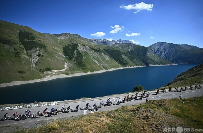 総合争いでは、チーム・ユンボ・ビスマ(Team Jumbo Visma)のヨナス・ヴィンゲゴー(Jonas Vingegaard、デンマーク)が首位を維持し、UTE(UAE TEAM EMIRATES)の王者タデイ・ポガチャル(Tadej Pogacar、スロベニア)が2位、イネオスに所属する2018年大会覇者のゲラント・トーマス(Geraint Thomas、英国)が3位につけている。(c)AFP