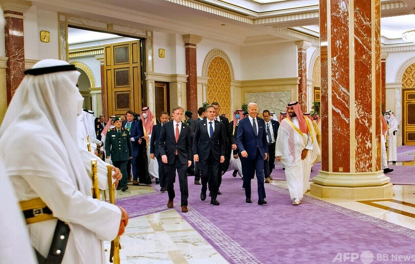 サウジは米国にとって数十年来の重要な戦略的同盟国で、主要産油国かつ、米製武器の大口輸入国でもある。米政府は、11月の中間選挙で与党・民主党の機運を損なっているガソリン価格の高騰やインフレ高進の抑制に向け、世界最大の原油輸出国であるサウジによる原油増産を要望しており、バイデン氏はこれまでの姿勢を転換して両国間の関係を強化する意向のようだ。(c)AFP/Aurélia End and Robbie Corey-Boulet