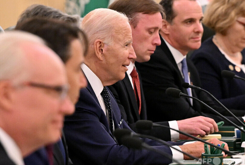 サウジは米国にとって数十年来の重要な戦略的同盟国で、主要産油国かつ、米製武器の大口輸入国でもある。米政府は、11月の中間選挙で与党・民主党の機運を損なっているガソリン価格の高騰やインフレ高進の抑制に向け、世界最大の原油輸出国であるサウジによる原油増産を要望しており、バイデン氏はこれまでの姿勢を転換して両国間の関係を強化する意向のようだ。(c)AFP/Aurélia End and Robbie Corey-Boulet