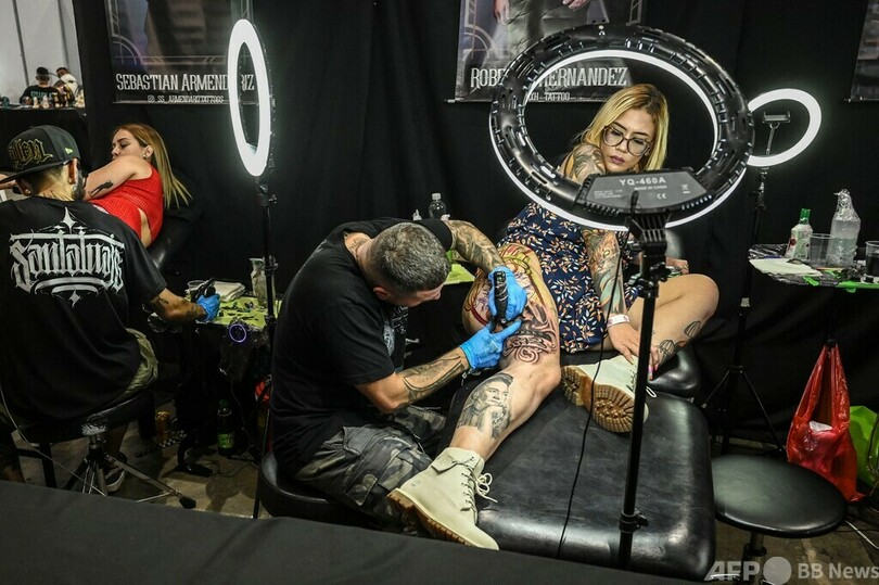 【7月16日 AFP】コロンビア・メデジン(Medellin)で15日、12回目となるタトゥー見本市「エキスポタトゥー・コロンビア・フェア(Expotattoo Colombia Fair)」が開幕した。会場ではタトゥーアーティストによる実演も見られた。会期は17日まで。(c)AFP