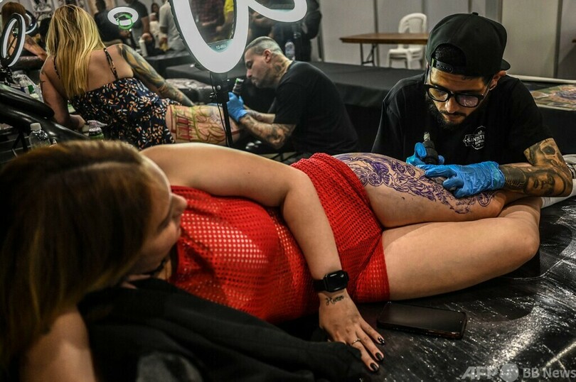 【7月16日 AFP】コロンビア・メデジン(Medellin)で15日、12回目となるタトゥー見本市「エキスポタトゥー・コロンビア・フェア(Expotattoo Colombia Fair)」が開幕した。会場ではタトゥーアーティストによる実演も見られた。会期は17日まで。(c)AFP