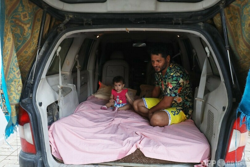 【7月20日 AFP】「これが私のベッドルームだ」。戦火で国土が荒廃した北アフリカ・リビアで、マフムード・アグイルさん(48)は、後部座席を取り除いて自身と2人の子どものための睡眠場所を確保した自家用のライトバンを指さした。