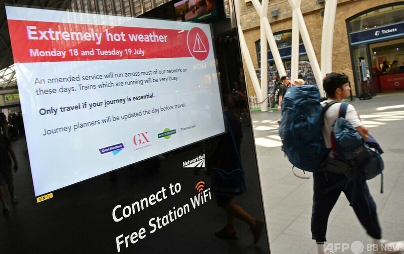 ロンドン南西部のキュー王立植物園(Kew Gardens)では、午後3時(日本時間同11時)までに気温が37.5度まで上昇し、同国最高記録の38.7度に近づいた。ロンドン北郊のルートン(Luton)空港では、高温のため滑走路に問題が生じ、航空便の運航が停止された。