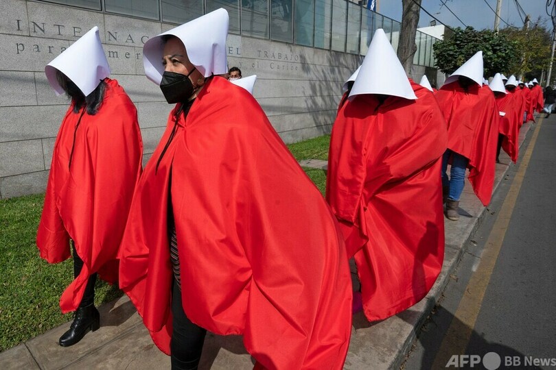 【7月20日 AFP】ペルーの首都リマで18日、テレビドラマ「ハンズメイド・テイル/侍女の物語(The Handsmaid's Tale)」のキャラクターに扮(ふん)した女性やトランスジェンダーの人々約30人が、国連(UN)人権高等弁務官に対し、女性が日常的に暴力に直面している国内の状況を訴えた。