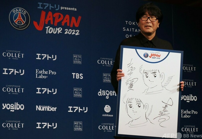 PSGが都内でパーティーに出席、「キャプテン翼」のイラストに興味津々