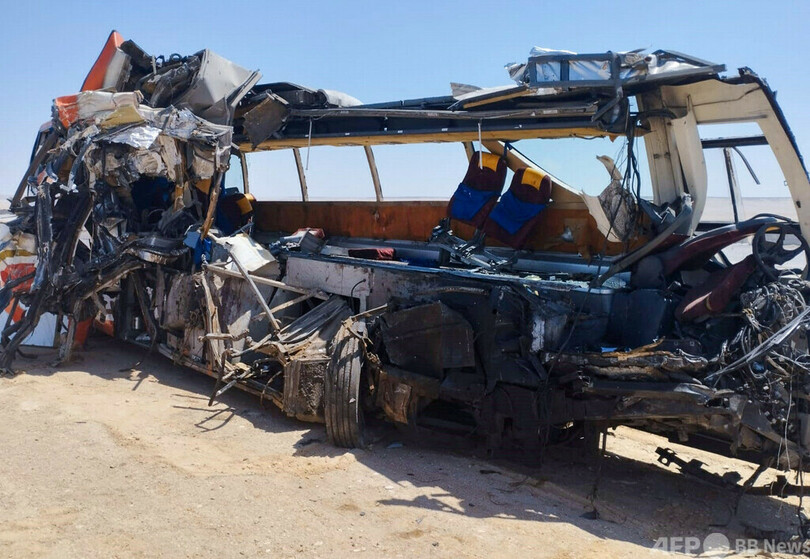 ニュース 社会 エジプト、バス事故で25人死亡 駐車中のトラックと衝突 2022年7月20日 3:08 発信地:カイロ/エジプト [ エジプト 中東・北アフリカ ] このニュースをシェア ‹ › ❮ 3/3 ❯ エジプト中部ミニヤ県で、トラックと衝突したバス(2022年7月19日撮影)。(c)AFP 画像作成中 ! 【7月20日 AFP】エジプト中部ミニヤ(Minya)県で19日、45人前後が乗ったバスが駐車中のトラックに衝突し、国営メディアによると少なくとも25人が死亡、35人以上が負傷した。 同県当局によると、南部ソハグ(Sohag)県から首都カイロに向かっていたバスが、タイヤ交換のために道路脇に停車していたトラックに追突した。 エジプトでは道路の整備が十分ではなく、交通規則の無視も横行しているため、事故が相次いでいる。公式統計によると、2020年には約7000人が交通事故で死亡した。(c)AFP 社会 一覧へ> メディア・報道関係・法人の方向け 写真・動画 購入のお問合せ>