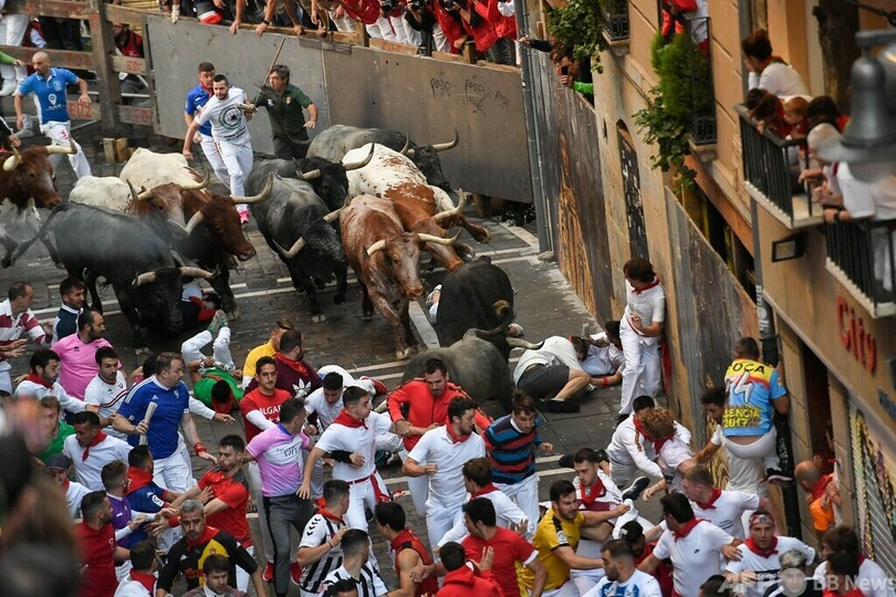 中でも7月に北部パンプロナ(Pamplona)で1週間にわたり開かれる「サン・フェルミン祭(San Fermin Festival)」が有名。今年は5人が牛に突かれた。サン・フェルミン祭では1911年以降、累計16人が死亡している。(c)AFP
