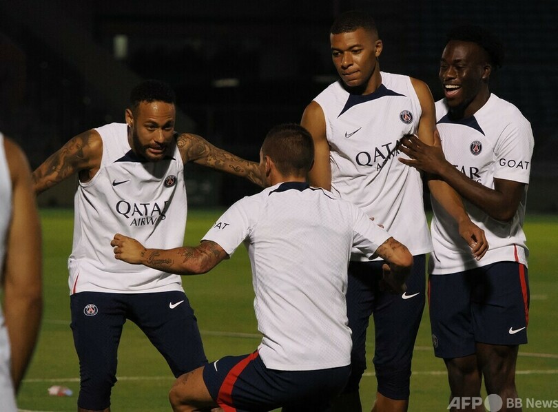 【7月23日 AFP】プレシーズンツアーで来日中のフランス・リーグ1、パリ・サンジェルマン(Paris Saint-Germain、PSG)の選手たちが22日、Jリーグ1部(J1)の浦和レッドダイヤモンズ(Urawa Red Diamonds)との試合を翌日に控え、都内でトレーニングを行った。(c)AFP
