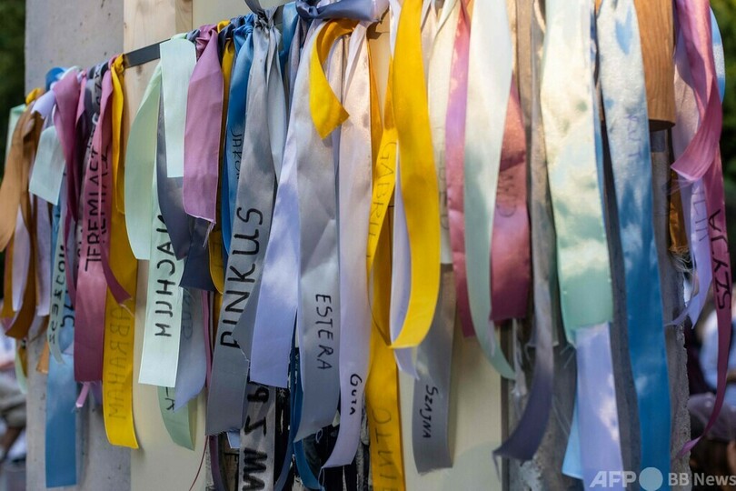 【7月23日 AFP】ポーランドで22日、第2次世界大戦(World War II)中にナチス・ドイツ(Nazi)が首都ワルシャワに設置したユダヤ人隔離居住区「ワルシャワ・ゲットー」から中部トレブリンカ(Treblinka)強制収容所へのユダヤ人の移送を開始した日から80年の節目を迎えた。市内では犠牲者を追悼する行進が行われ、大勢が犠牲者の名前が書かれたリボンを手に参加した。