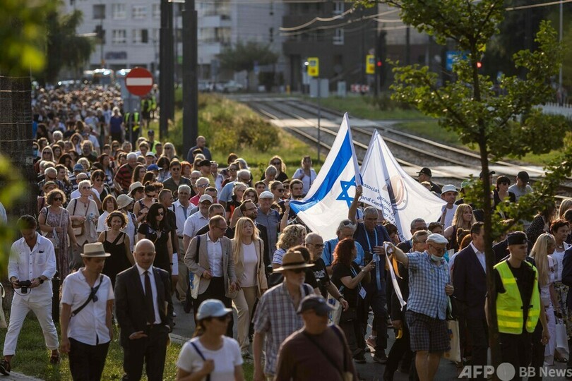 【7月23日 AFP】ポーランドで22日、第2次世界大戦(World War II)中にナチス・ドイツ(Nazi)が首都ワルシャワに設置したユダヤ人隔離居住区「ワルシャワ・ゲットー」から中部トレブリンカ(Treblinka)強制収容所へのユダヤ人の移送を開始した日から80年の節目を迎えた。市内では犠牲者を追悼する行進が行われ、大勢が犠牲者の名前が書かれたリボンを手に参加した。