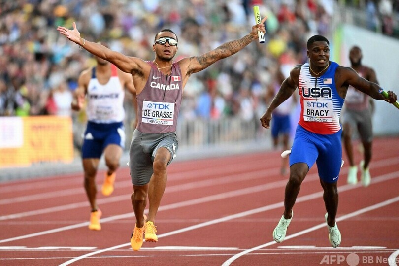 【7月24日 AFP】第18回世界陸上オレゴン大会(World Athletics Championships Oregon 22)は23日、男子4×100メートルリレー決勝が行われ、カナダが米国を破る番狂わせを起こし、金メダルに輝いた。