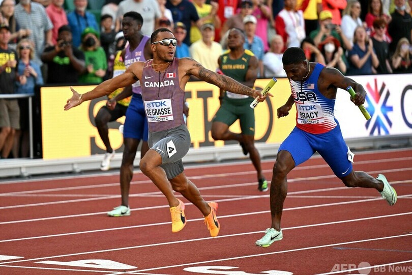 【7月24日 AFP】第18回世界陸上オレゴン大会(World Athletics Championships Oregon 22)は23日、男子4×100メートルリレー決勝が行われ、カナダが米国を破る番狂わせを起こし、金メダルに輝いた。
