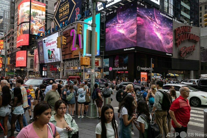 【8月1日 AFP】米ニューヨークのタイムズスクエア(Times Square)の大型ディスプレーに表示される、ジェームズ・ウェッブ宇宙望遠鏡(James Webb Space Telescope)が捉えた画像。ゴダード宇宙飛行センター(Goddard Space Flight Center)で順次公開された赤外線画像は、前例のない明瞭さで深遠な宇宙を写し出し、100億ドル(約1兆3500億円)を費やして製造されたウェッブ宇宙望遠鏡の実力を余すところなく発揮した。(c)AFP