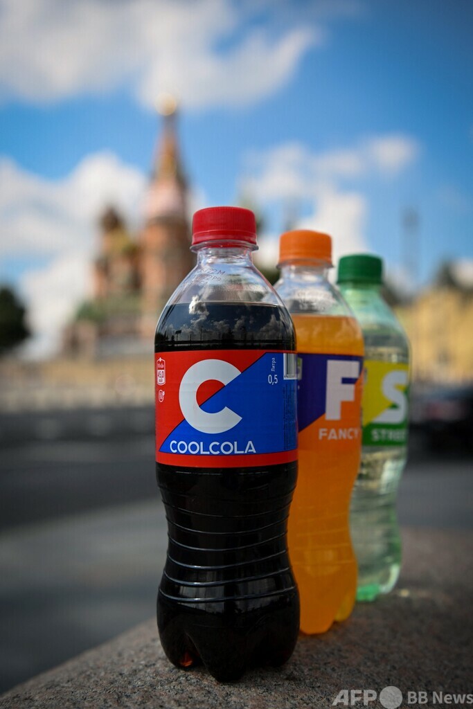 ロシアによるウクライナ侵攻を受け、コカ・コーラがロシアでの事業を停止すると、国内飲料メーカー、オチャコボ(Ochakovo)は、コカ・コーラの世界的な三大商品に代わる商品の生産を開始した。(c)AFP