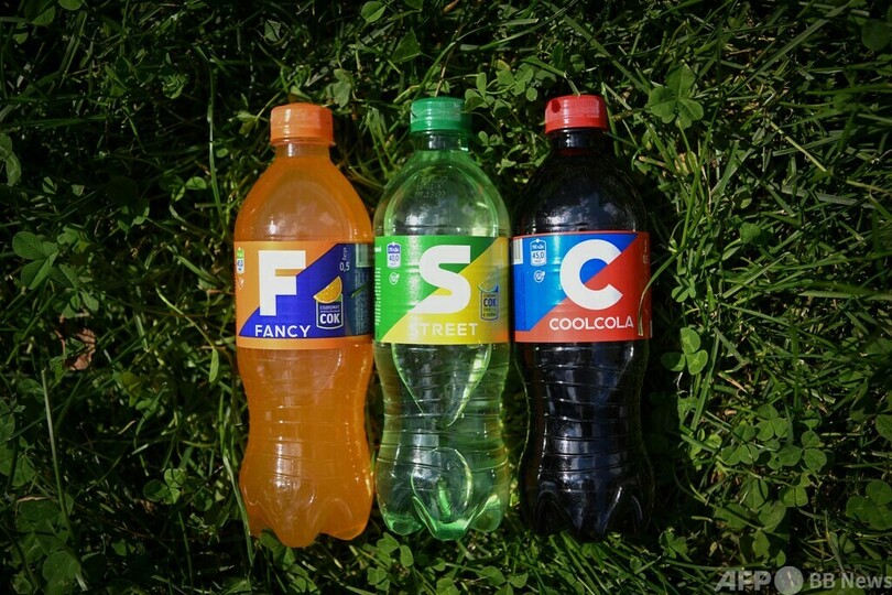 【7月26日 AFP】ロシア・モスクワで25日に撮影された、米飲料大手コカ・コーラ(Coca-Cola)の清涼飲料水、ファンタ(Fanta)、スプライト(Sprite)、コカ・コーラ(Coca-Cola)ではなく、名前とデザインが似ているファンシー(Fancy)、ストリート(Street)、クール・コーラ(CoolCola)のペットボトル。
