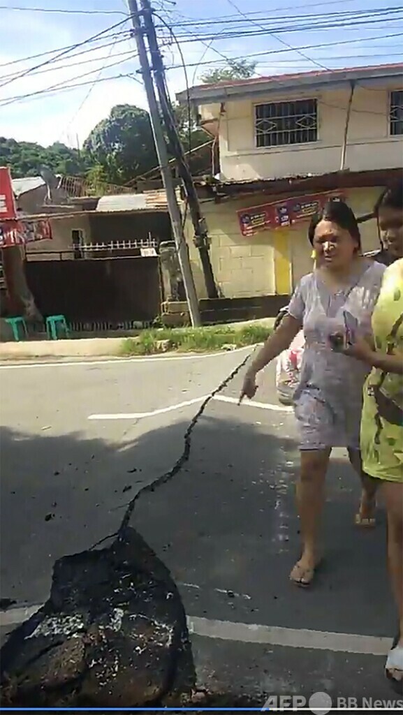 フェイスブック(Facebook)に投稿された動画によると、ドローレス近くの町バンゲド(Bangued)ではアスファルトの道路や地面にひびが入ったが、商店や民家には被害はないようだった。この動画についてはAFPが事実検証済み。