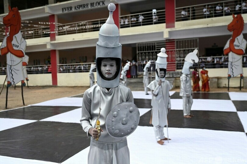 【7月27日 AFP】インド南部チェンナイ(Chennai)で26日、チェスの世界的行事「第44回チェス・オリンピアード(Chess Olympiad)」を前に「人間チェス」が開催された。子どもたちが顔にペイントを施し、駒に扮(ふん)した。(c)AFP