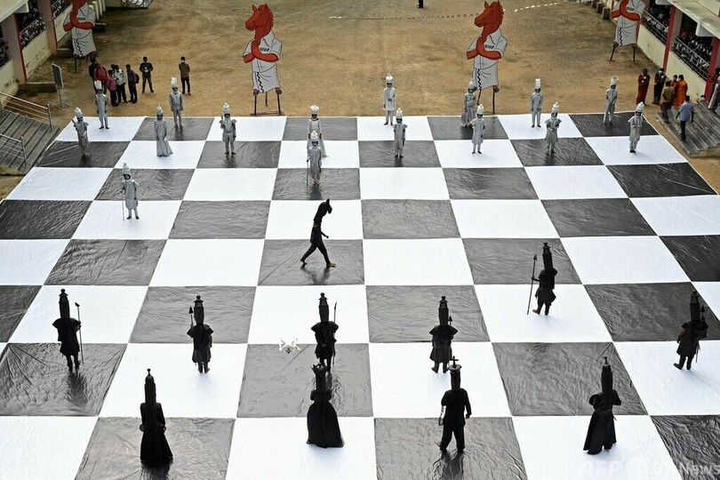 【7月27日 AFP】インド南部チェンナイ(Chennai)で26日、チェスの世界的行事「第44回チェス・オリンピアード(Chess Olympiad)」を前に「人間チェス」が開催された。子どもたちが顔にペイントを施し、駒に扮(ふん)した。(c)AFP