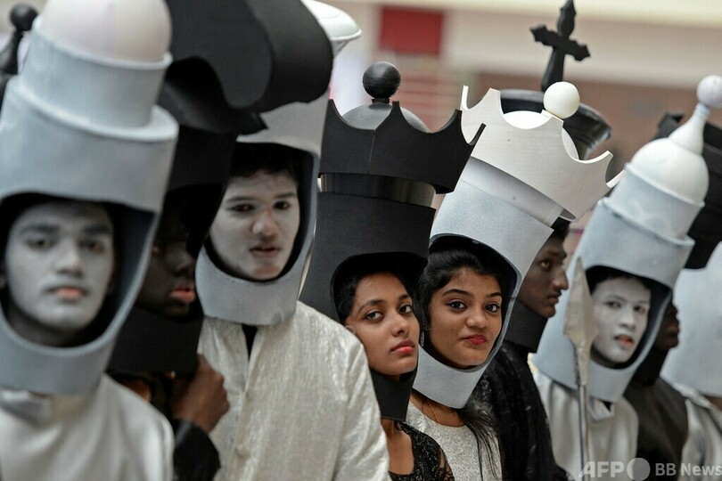 【7月27日 AFP】インド南部チェンナイ(Chennai)で26日、チェスの世界的行事「第44回チェス・オリンピアード(Chess Olympiad)」を前に「人間チェス」が開催された。子どもたちが顔にペイントを施し、駒に扮(ふん)した。(c)AFP