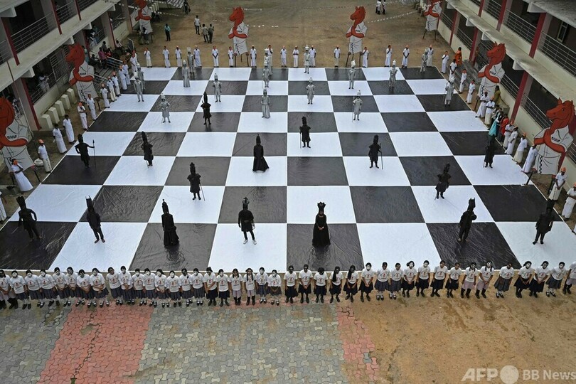【7月27日 AFP】インド南部チェンナイ(Chennai)で26日、チェスの世界的行事「第44回チェス・オリンピアード(Chess Olympiad)」を前に「人間チェス」が開催された。子どもたちが顔にペイントを施し、駒に扮(ふん)した。(c)AFP