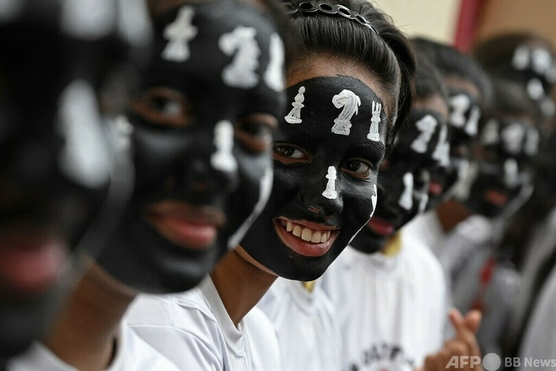 【7月27日 AFP】インド南部チェンナイ(Chennai)で26日、チェスの世界的行事「第44回チェス・オリンピアード(Chess Olympiad)」を前に「人間チェス」が開催された。子どもたちが顔にペイントを施し、駒に扮(ふん)した。(c)AFP