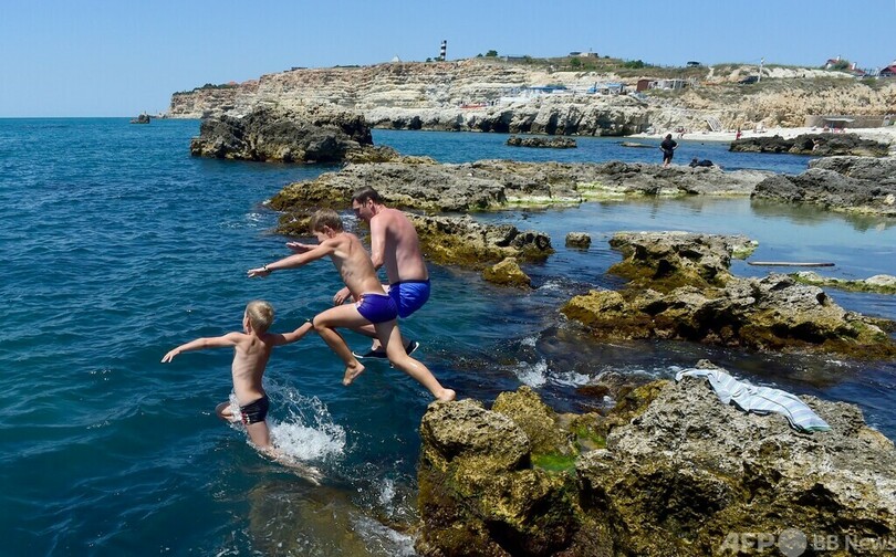 7月のある暑い日、AFPはセバストポリの浜辺を訪れた。少年たちが岩から海へ飛び込み、上半身裸の男性たちがビール片手にロシアの夏の風物詩シャシリク(串焼き肉)を作っていた。海水浴客が涼む沖には、ロシアの軍艦が見えた。