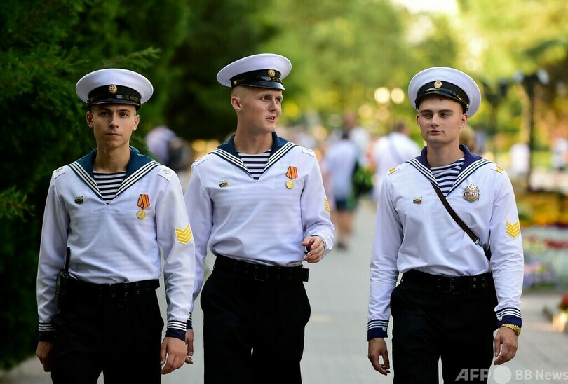 7月のある暑い日、AFPはセバストポリの浜辺を訪れた。少年たちが岩から海へ飛び込み、上半身裸の男性たちがビール片手にロシアの夏の風物詩シャシリク(串焼き肉)を作っていた。海水浴客が涼む沖には、ロシアの軍艦が見えた。