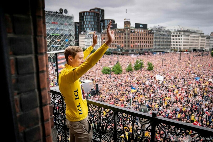 この日は優勝者に与えられるマイヨ・ジョーヌ(イエロージャージー)をまとってオープンカーでのパレードに臨み、沿道にはデンマークの国旗色の赤と白やイエロージャージーと同じ黄色の服を着た人たちの姿があった。