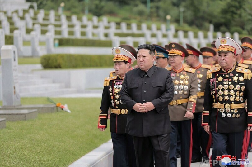 ニュース 政治・経済 北朝鮮で「戦勝」記念式典 朝鮮戦争休戦協定から69年 2022年7月28日 15:40 発信地:平壌/北朝鮮 [ 北朝鮮 韓国・北朝鮮 ] このニュースをシェア ‹ › ❮ 21/22 ❯ 北朝鮮の平壌で、朝鮮戦争の「戦勝記念日」に合わせて戦没者墓地を訪れる金正恩総書記。朝鮮中央通信(KCNA)提供(2022年7月27日撮影、28日公開)。(c)AFP PHOTO/KCNA VIA KNS 画像作成中 ! 【7月28日 AFP】朝鮮戦争(Korean War)の休戦協定締結から69年を迎えた27日、北朝鮮の平壌で「戦勝記念日」を祝う式典が開かれた。(c)AFP 政治・経済 一覧へ> メディア・報道関係・法人の方向け 写真・動画 購入のお問合せ>