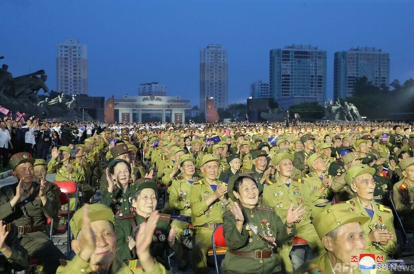 ニュース 政治・経済 北朝鮮で「戦勝」記念式典 朝鮮戦争休戦協定から69年 2022年7月28日 15:40 発信地:平壌/北朝鮮 [ 北朝鮮 韓国・北朝鮮 ] このニュースをシェア ‹ › ❮ 11/22 ❯ 北朝鮮の平壌で、朝鮮戦争の「戦勝記念日」を祝う式典に参加する退役軍人ら。朝鮮中央通信(KCNA)提供(2022年7月27日撮影、28日公開)。(c)AFP PHOTO/KCNA VIA KNS 画像作成中 ! 【7月28日 AFP】朝鮮戦争(Korean War)の休戦協定締結から69年を迎えた27日、北朝鮮の平壌で「戦勝記念日」を祝う式典が開かれた。(c)AFP 政治・経済 一覧へ> メディア・報道関係・法人の方向け 写真・動画 購入のお問合せ>