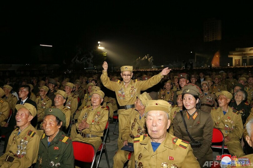 ニュース 政治・経済 北朝鮮で「戦勝」記念式典 朝鮮戦争休戦協定から69年 2022年7月28日 15:40 発信地:平壌/北朝鮮 [ 北朝鮮 韓国・北朝鮮 ] このニュースをシェア ‹ › ❮ 10/22 ❯ 北朝鮮の平壌で、朝鮮戦争の「戦勝記念日」を祝う式典に参加する退役軍人ら。朝鮮中央通信(KCNA)提供(2022年7月27日撮影、28日公開)。(c)AFP PHOTO/KCNA VIA KNS 画像作成中 ! 【7月28日 AFP】朝鮮戦争(Korean War)の休戦協定締結から69年を迎えた27日、北朝鮮の平壌で「戦勝記念日」を祝う式典が開かれた。(c)AFP 政治・経済 一覧へ> メディア・報道関係・法人の方向け 写真・動画 購入のお問合せ>