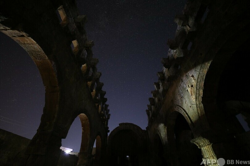 【8月7日 AFP】5世紀に建てられたシリアのバシリカ式教会堂と、上空に昇る天の川銀河(銀河系、Milky Way)。