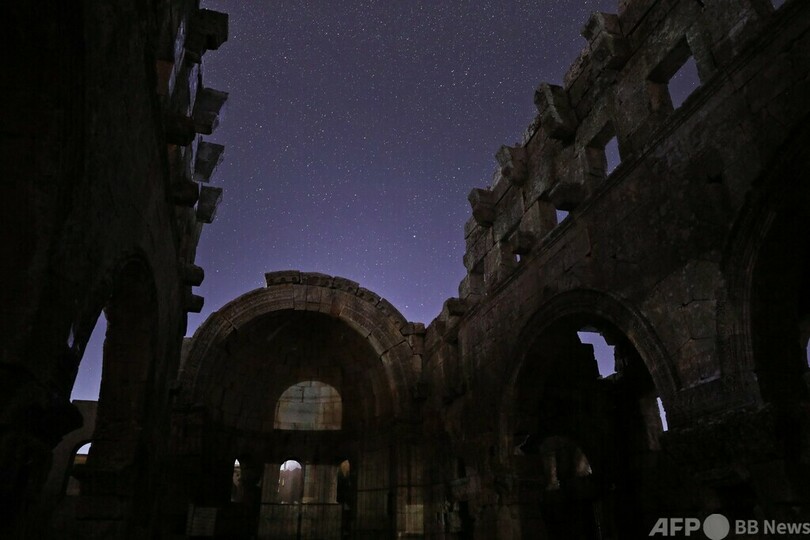 【8月7日 AFP】5世紀に建てられたシリアのバシリカ式教会堂と、上空に昇る天の川銀河(銀河系、Milky Way)。