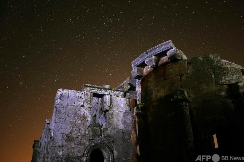 【8月7日 AFP】5世紀に建てられたシリアのバシリカ式教会堂と、上空に昇る天の川銀河(銀河系、Milky Way)。