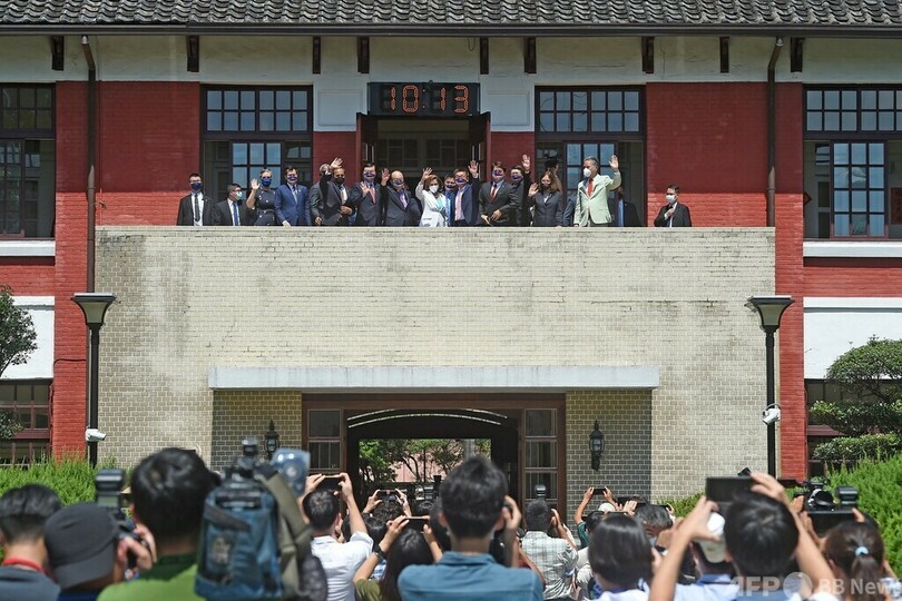 ペロシ氏は「われわれはきょう、台湾への関与をやめるつもりはないと明らかにするため台湾に来た。われわれの揺るぎない友情を誇りに思う」と語った。ペロシ氏は先に代表団は「米台友好の証し」および「域内の平和」のために訪台したと述べていた。(c)AFP/Amber WANG