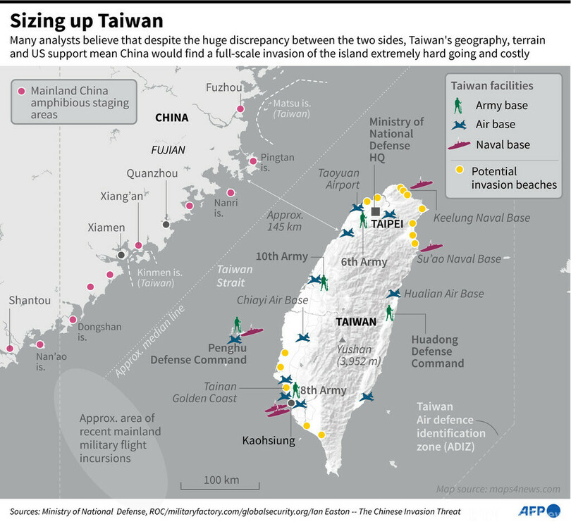 【8月3日 AFP】中国外務省は3日、米国のナンシー・ペロシ(Nancy Pelosi)下院議長が台湾を訪問したことを受けて実施される台湾海峡(Taiwan Strait)とその周辺での軍事演習は「必要であり正当だ」と強調した。
