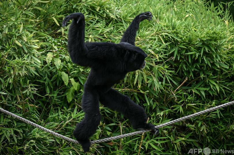 【8月7日 AFP】山火事で避難していた先から仏西部アルカション(Arcachon)のラテストドビュシュ(La Teste-de-Buch)の動物園に戻り、うれしそうな様子を見せるライオン。