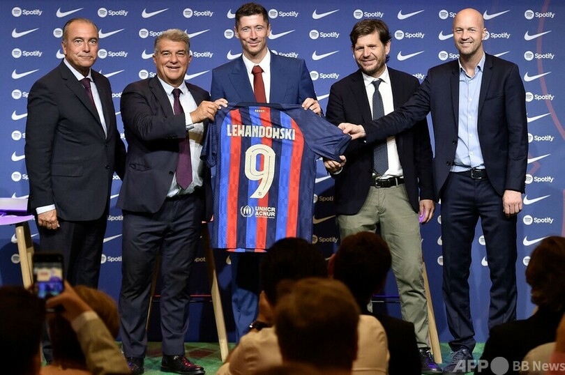 レワンドフスキは本拠地カンプ・ノウ(Camp Nou)のピッチで、メンフィス・デパイ(Memphis Depay)が昨季つけていた背番号9のユニホーム姿でお披露目された。同席したクラブのジョアン・ラポルタ(Joan Laporta)会長は「歴史的な日だ。この作業は簡単ではなかった」と述べた。